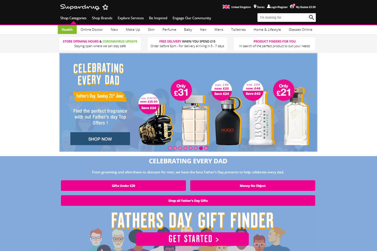 I have been the Lead Designer on the Fathers Day project at Superdrug for over two years in a row, this involves brainstorming idea's with other departments on how to increase customer participation in-store and online via multiple digital channels.