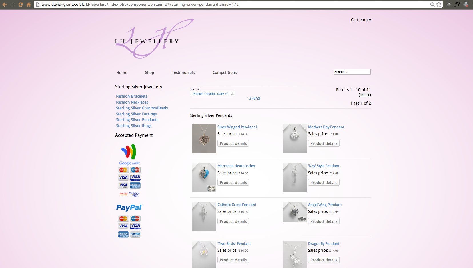 Rebrand and eCommerce web design using Joomla - LH Jewellery in 2013